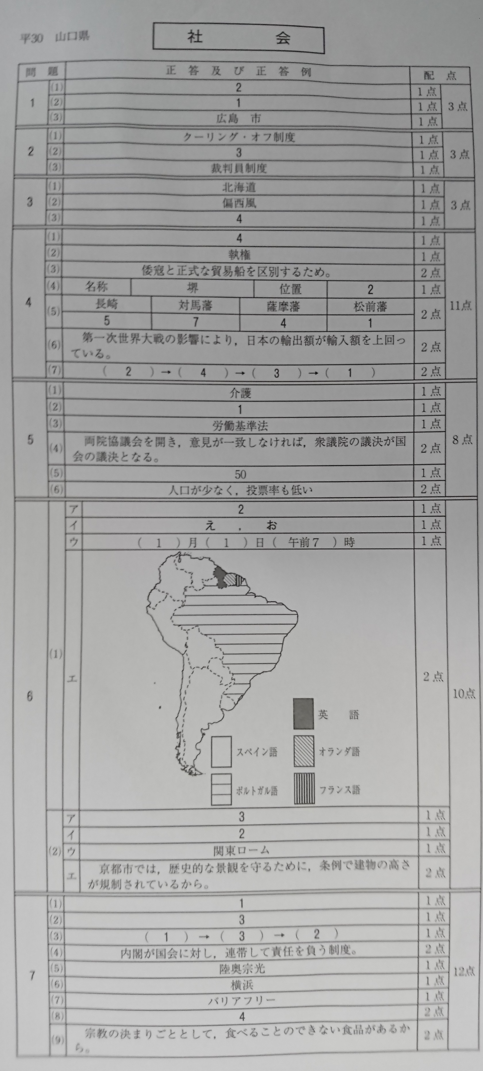 学校指定教科検査の解答はこちらから。(学校指定教科の試験終了後に公開されます)