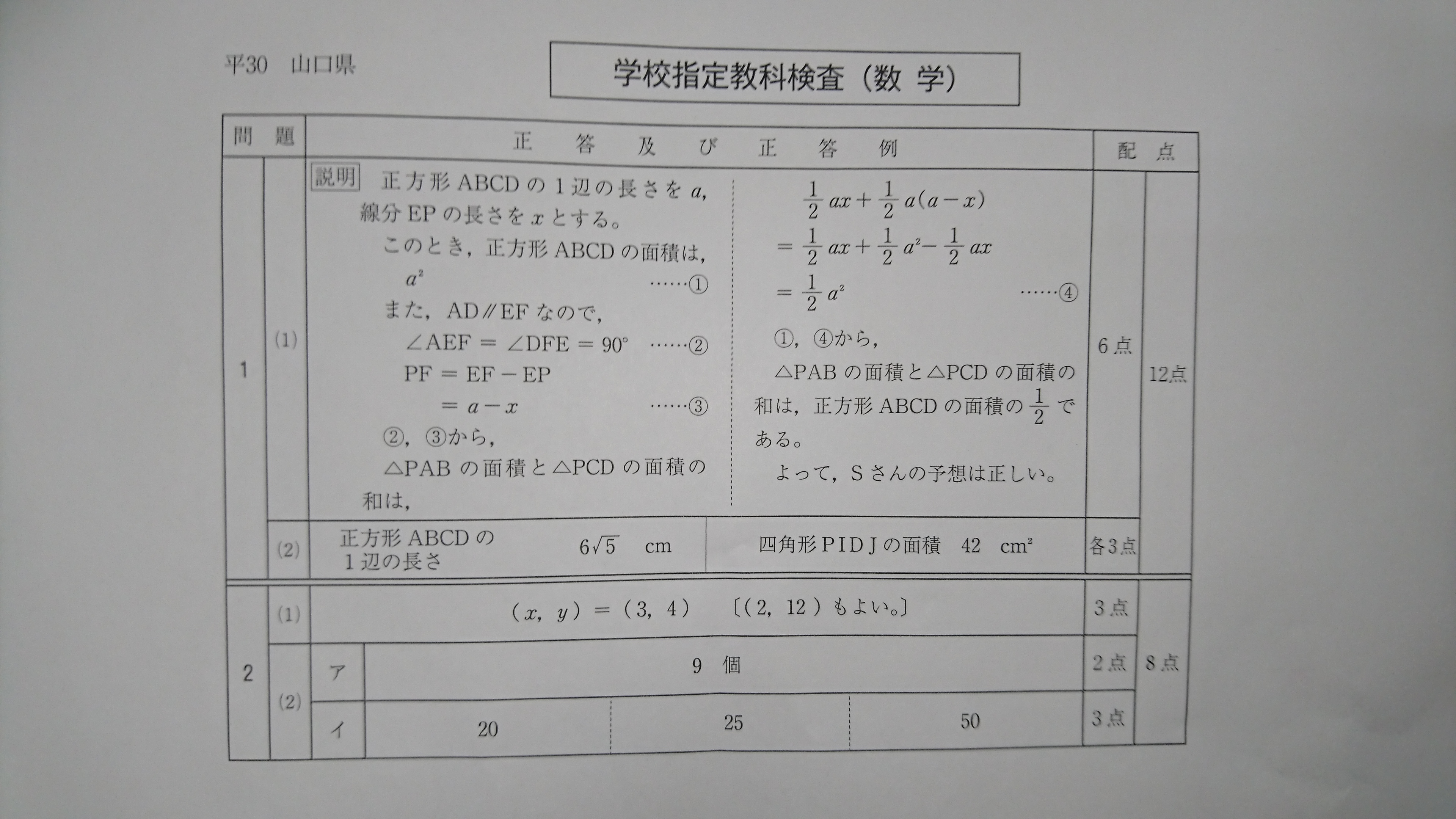 平成30年度山口県公立高校入試 学力検査(解答)に引き続き、