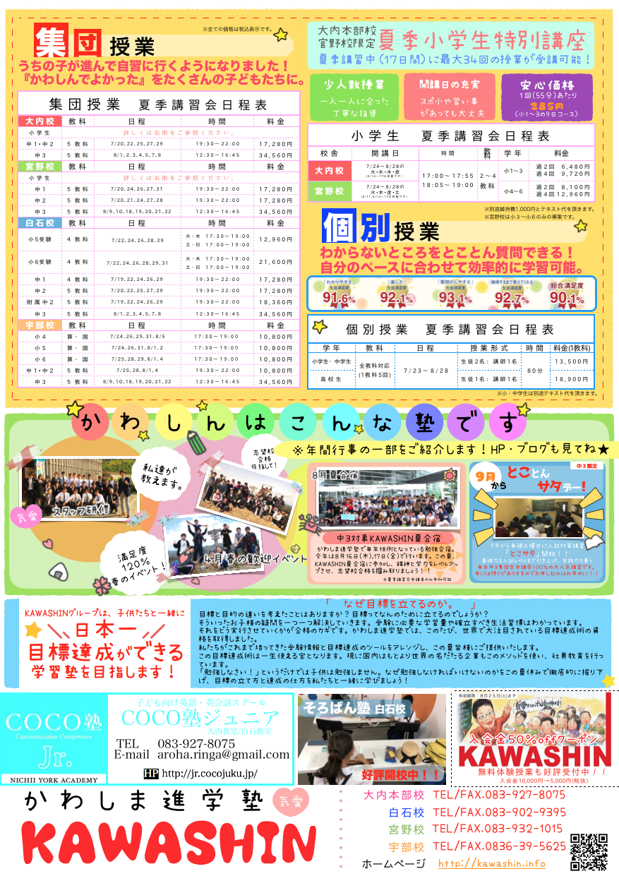 かわしま進学塾 夏季講習会の日程・詳細はこちら!