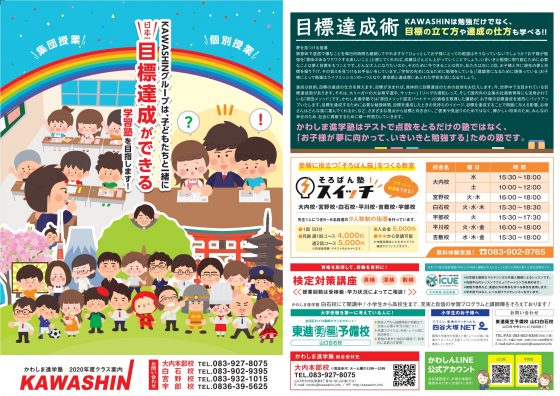 山口市・宇部市の学習塾「かわしま進学塾」の野上です。
