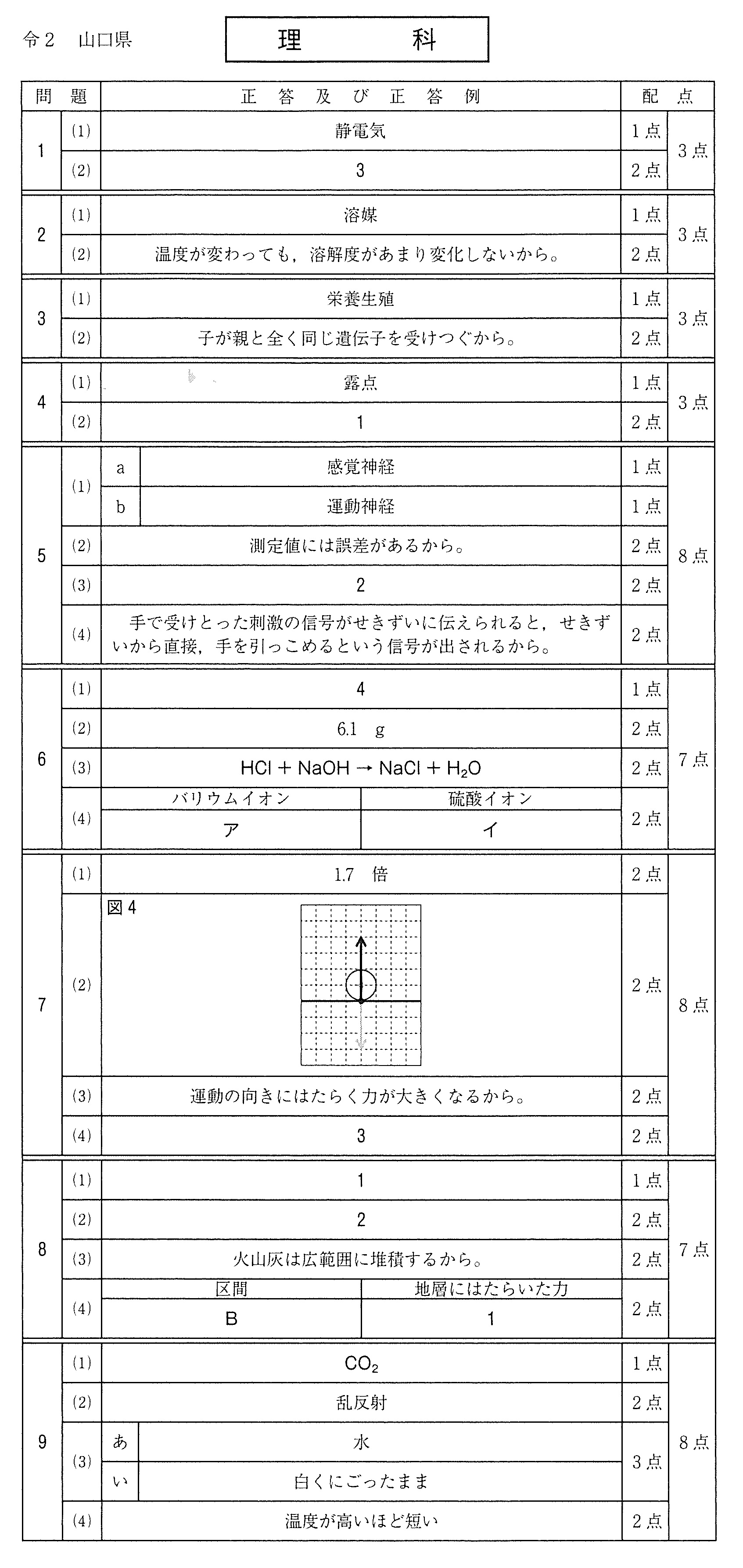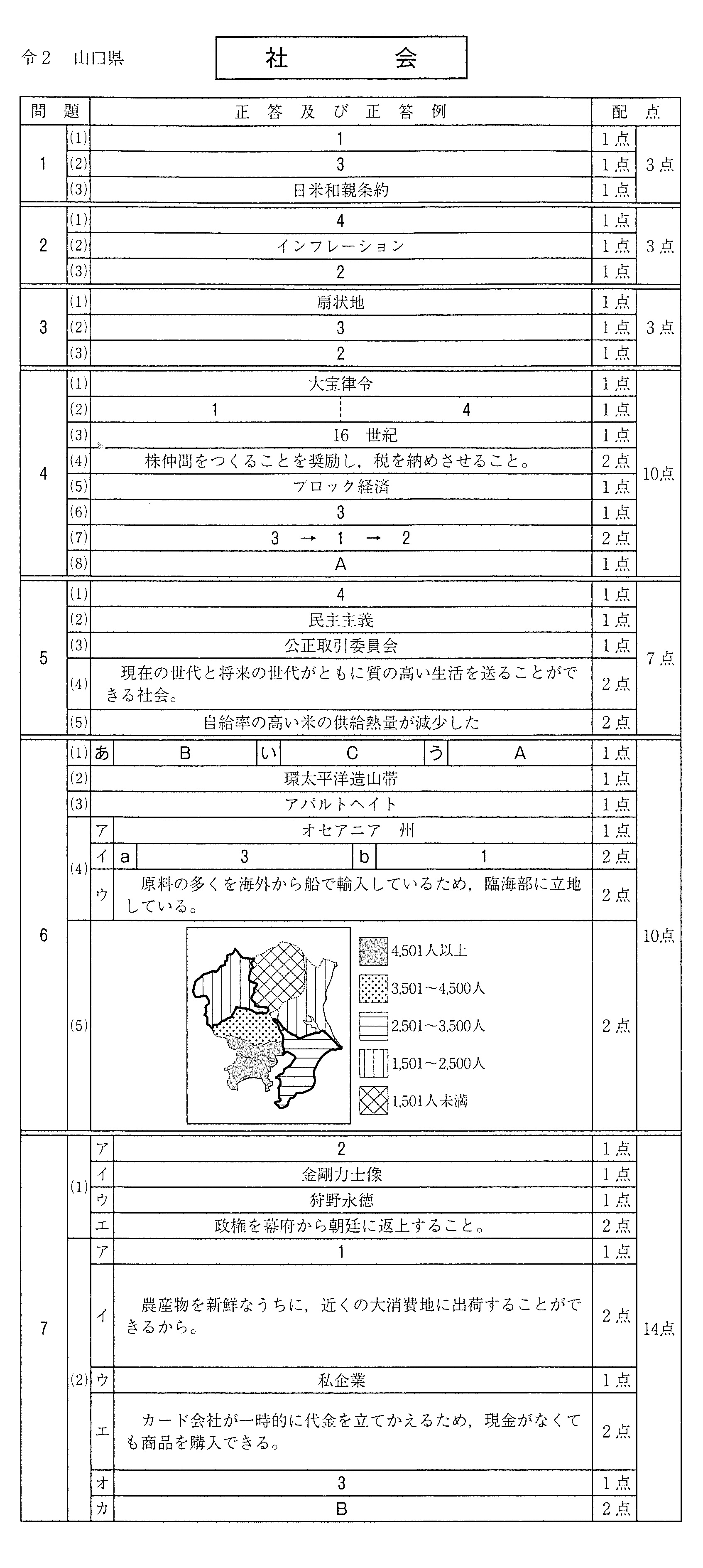 令和2年度山口県公立高校入試 学力検査問題(解答と配点)