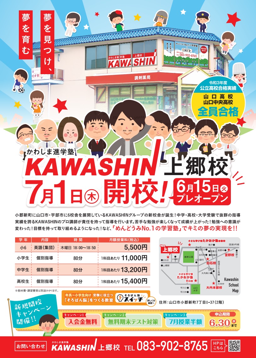 「KAWASHINの塾が小郡に新しくできた❗」と生徒さんや保護者さまの認知度が高まってきているのを感じています。