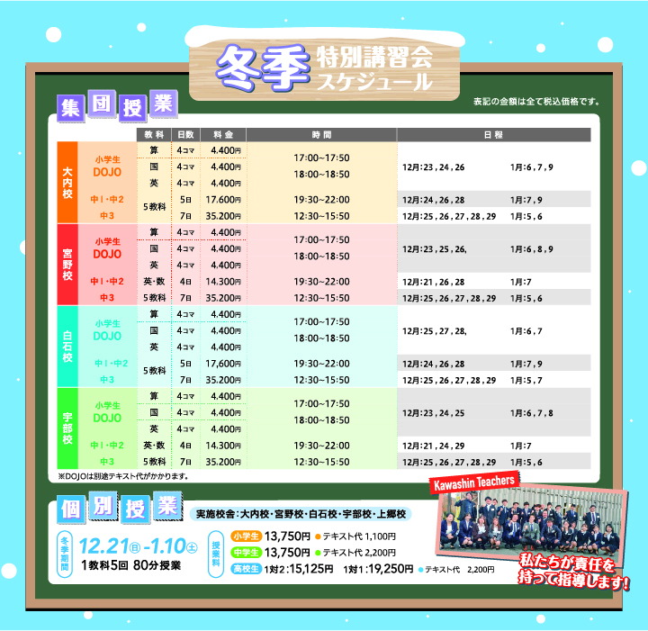 このようなサービスを通じて、いわゆる“ただのやり直し”ではなく、「学力を基盤から整えて伸ばす」、そんな冬季講習を実施いたします🔥
