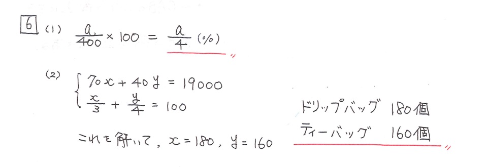 大問6 文字式+連立方程式
