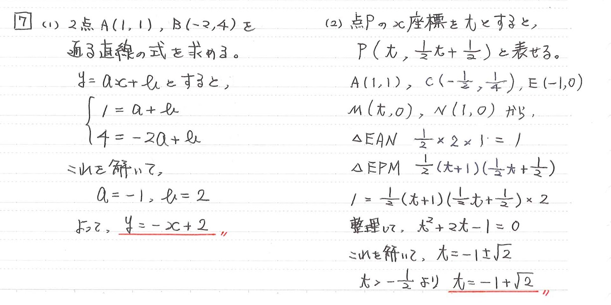 (1)は2点から一次関数の式を求めるオーソドックスな問題。