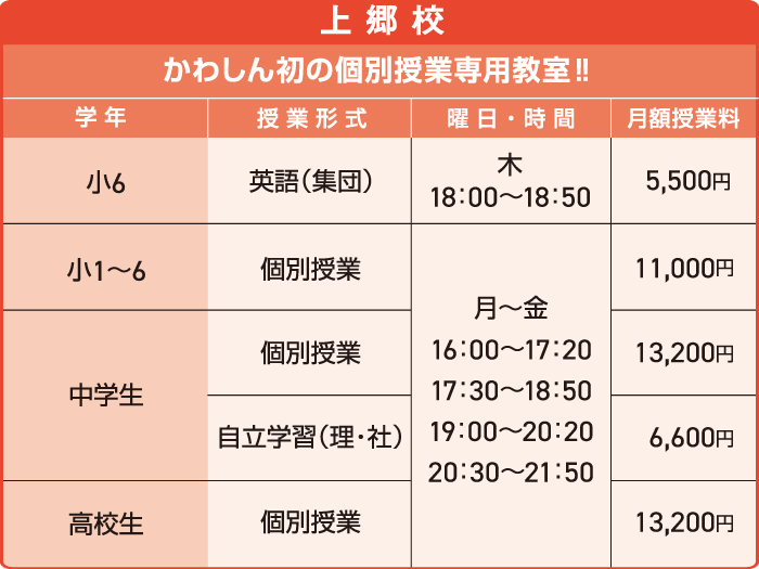 かわしま進学塾の個別指導の特徴